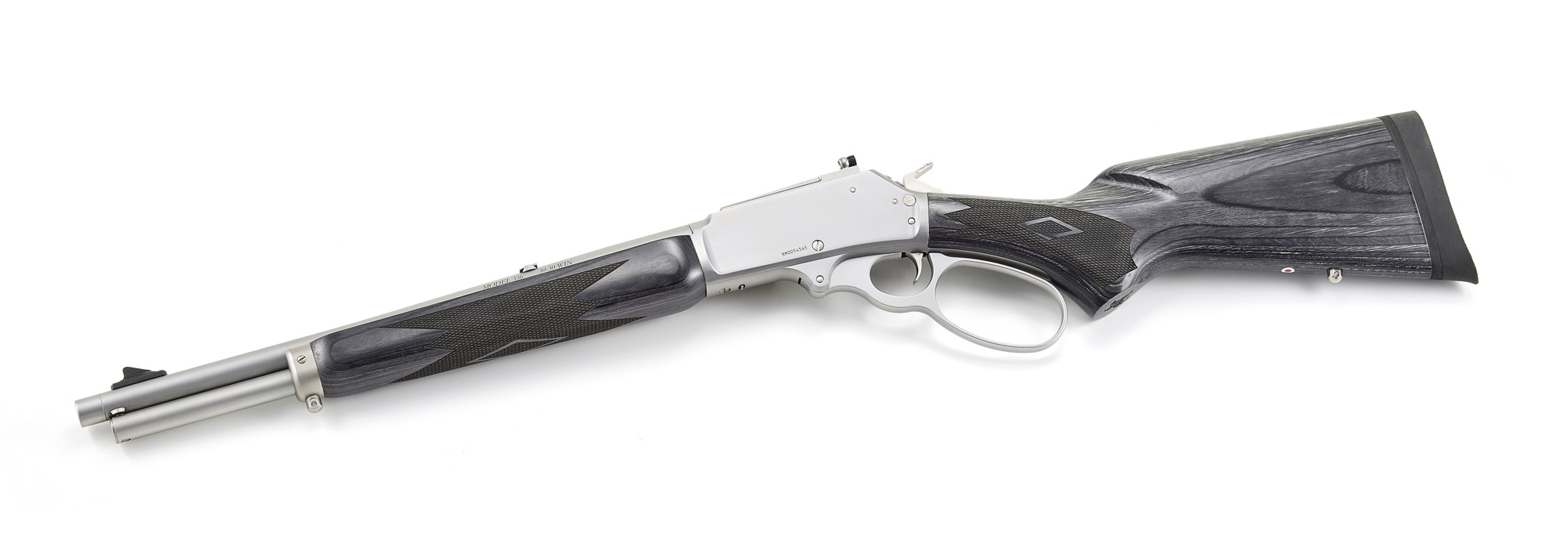 Based on the same platform as the Marlin SBL Series, the Marlin 336™ Trapper boasts a shorter, more maneuverable 16" barrel, offers a bead-blasted, satin stainless finish for low glare in the field and rapid acquisition with the adjustable Skinner Sights™ receiver-mounted peep sight system.