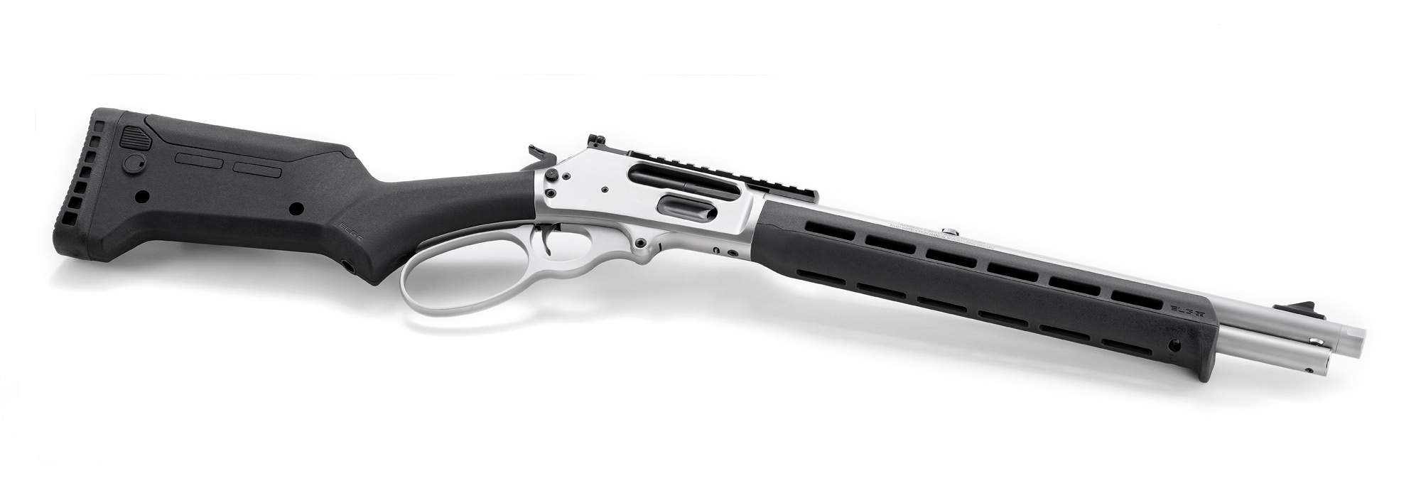 Receiver, lever and trigger guard plate are CNC machined from stainless steel forgings.